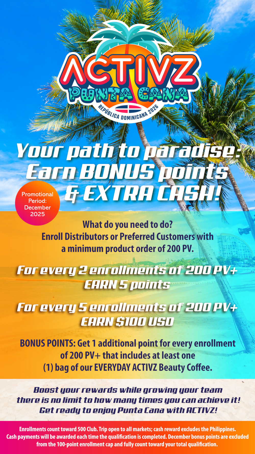 1. Enroll New Distributors or Preferred Customers with a minimum of 100 PV+